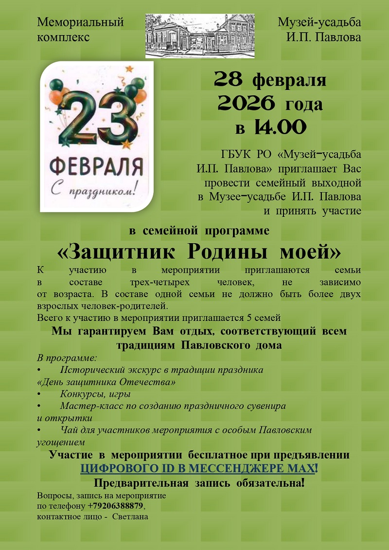 © 2016 ГБУК РО «Мемориальный комплекс «Музей-усадьба И.П. Павлова»